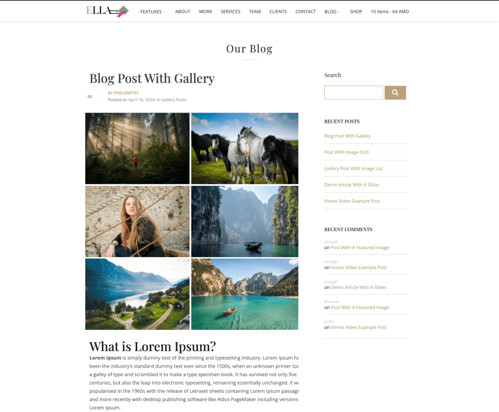 The Ella WordPress theme provides a powerful solution by allowing you to transform the featured image into a full gallery or slider with advanced effects and multiple layout options.
